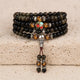Bracelet Mala Bouddhiste en Obsidienne Noire et Dorée